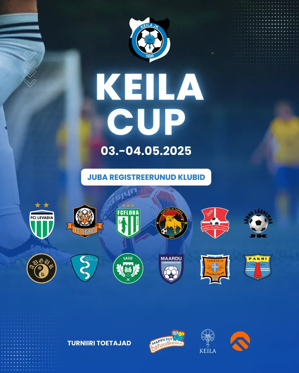 Keila Jalgpalliklubil on hea meel teid kutsuda Keila Cupile, mis toimub 03.-04.05.2025 Keila kunstmuru staadionil (Ehitajate tee 13, Keila, Harju maakond).